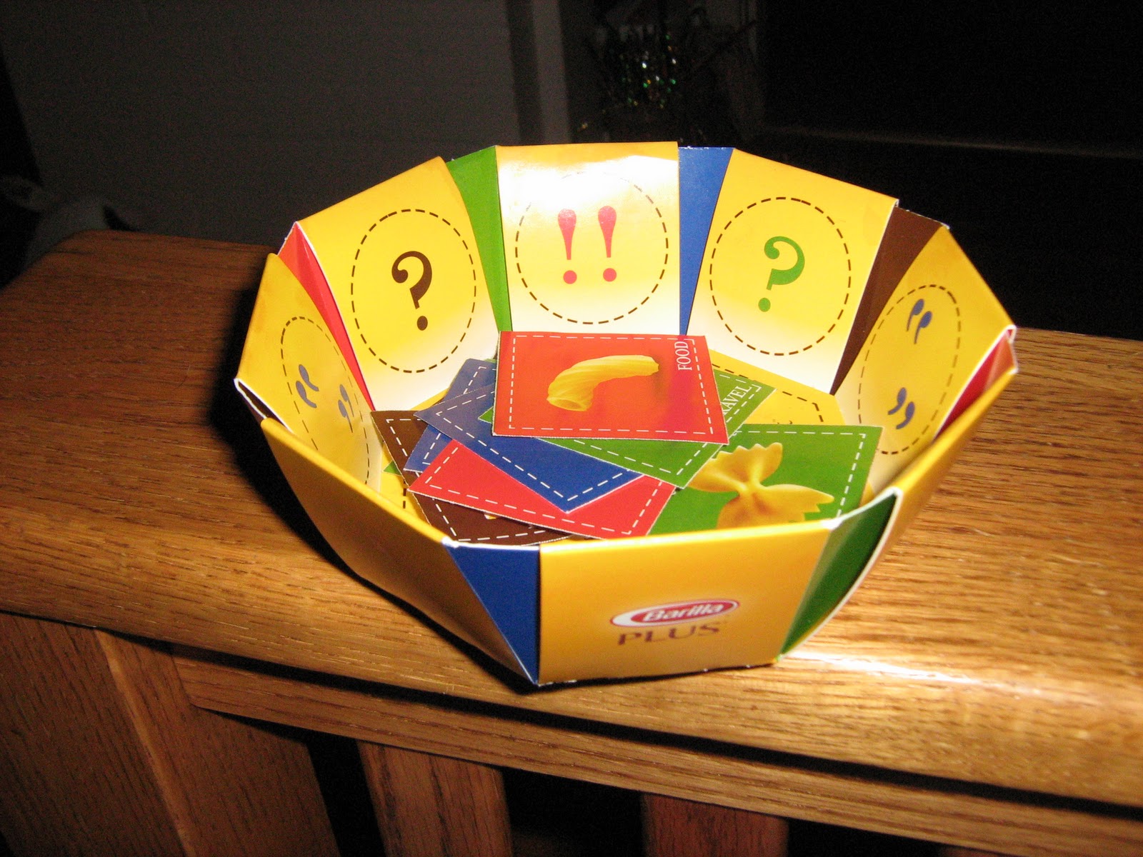 I was able to get a lot of good questions from How Does She?, which has a large variety suitable for both young and old. The other questions I took from the latest VocalPoint mailer for Barilla Plus pasta, which included a similar version of this same game, though not nearly as cute, right?